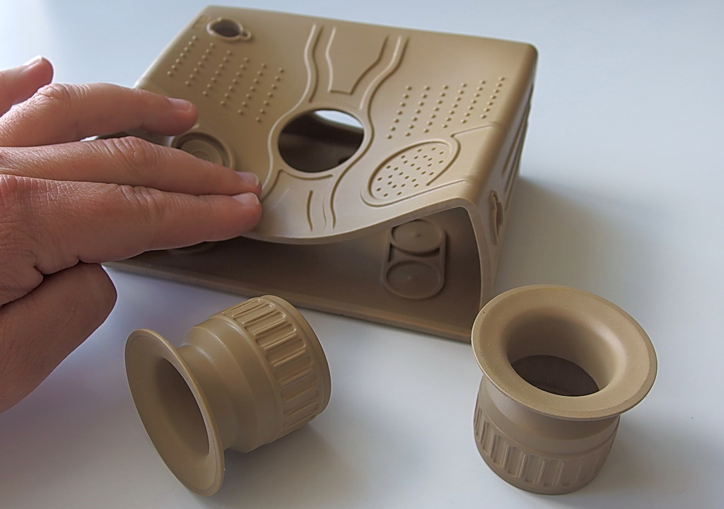 Литье пластмасс в силиконовые формы открывает широкие возможности при выборе формы и цвета изделия, его жесткости и вида поверхности (матовый или глянцевый). Пластмасса – недорогой, достаточно прочный и функциональный материал. Процесс изготовления заключается в заливке жидких компонентов синтетических полимерных составов в силиконовые матрицы. Это происходит в вакуумном пространстве, благодаря чему внутрь изделия не попадают пузырьки воздуха. После окончания процесса разливки пластика отвердевают. Благодаря использованию метода литья в силиконовые формы можно получить как твердые, так и эластичные детали.